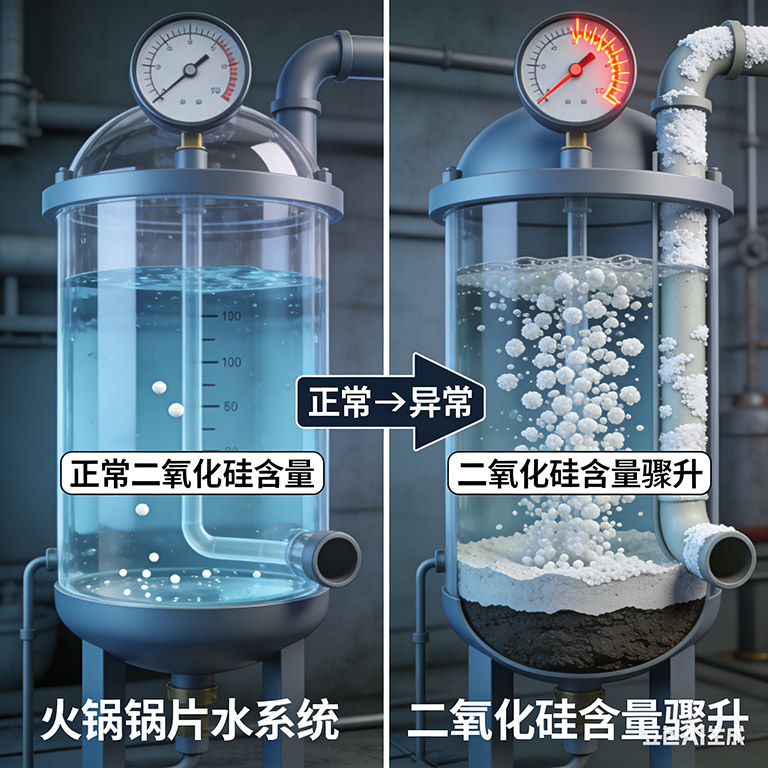 锅炉内部工况变化:锅炉运行参数的剧烈波动,如压力、负荷的突然变化,可能导致锅炉内部“隐藏”的沉积物(包括硅酸盐)被重新溶解或携带出来,造成炉水硅含量的瞬时升高。此外,在锅炉高浓度运行下,若炉水pH值控制不当,也会影响硅酸盐的溶解与沉积平衡。